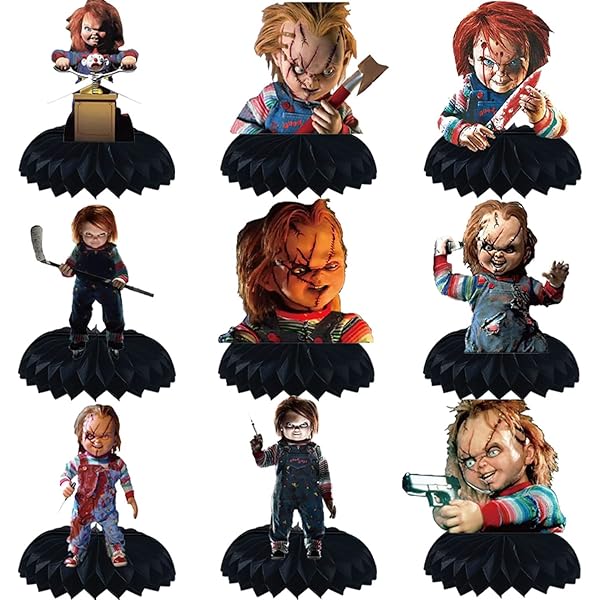 Amazon Com 9 Pcs Chucky Birthday Party Decorations Chucky Theme Party Centerpieces For Tables Photo Booth Props Cake Toppers Chucky Party Supplies For Girls And Boys Baby Show Toys Games